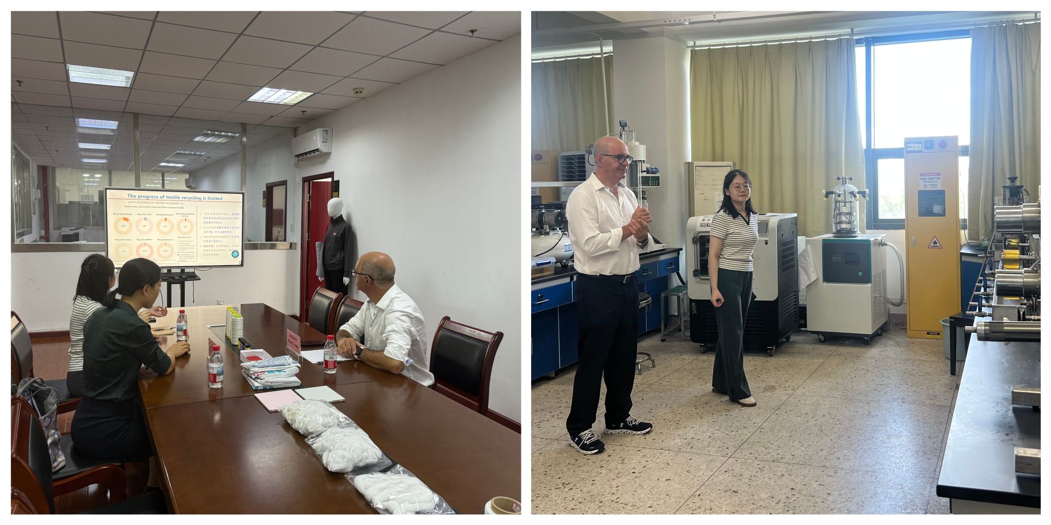 随后,António Braz Costa参观了国家地方联合工程实验室,并聚焦可持续发展与废旧纺织品循环再生技术,与LETOU官网王金凤团队展开了深入交流与探讨。双方一致认为,通过校企合作与信息共享推进先进技术研究,将有效提升废旧纺织品资源化利用率,并就具体研究方向、人员互访计划和项目落地可行性等细节进行沟通,明确未来合作路径与工作重点。