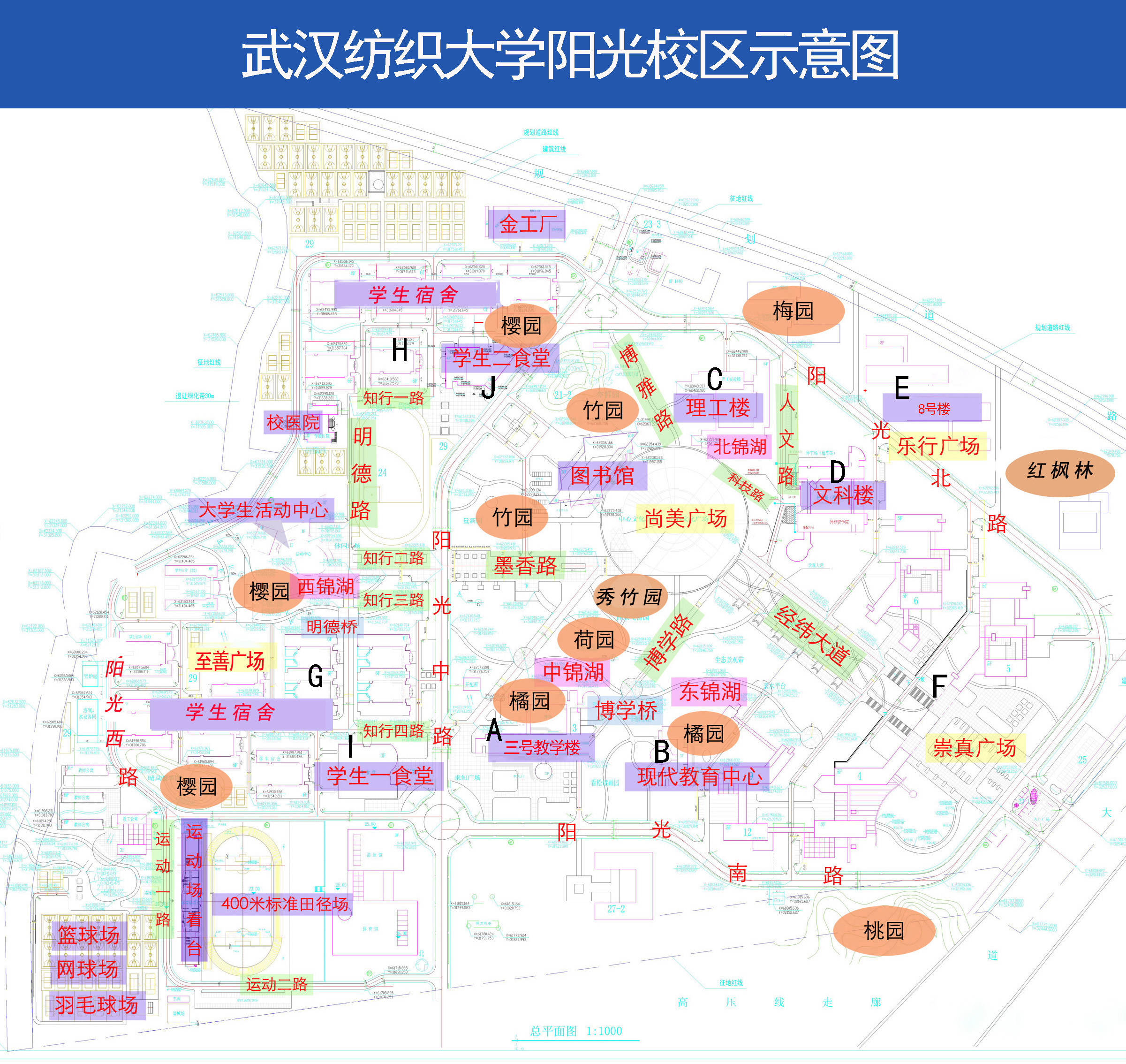 学生宿舍按区域分别命名: