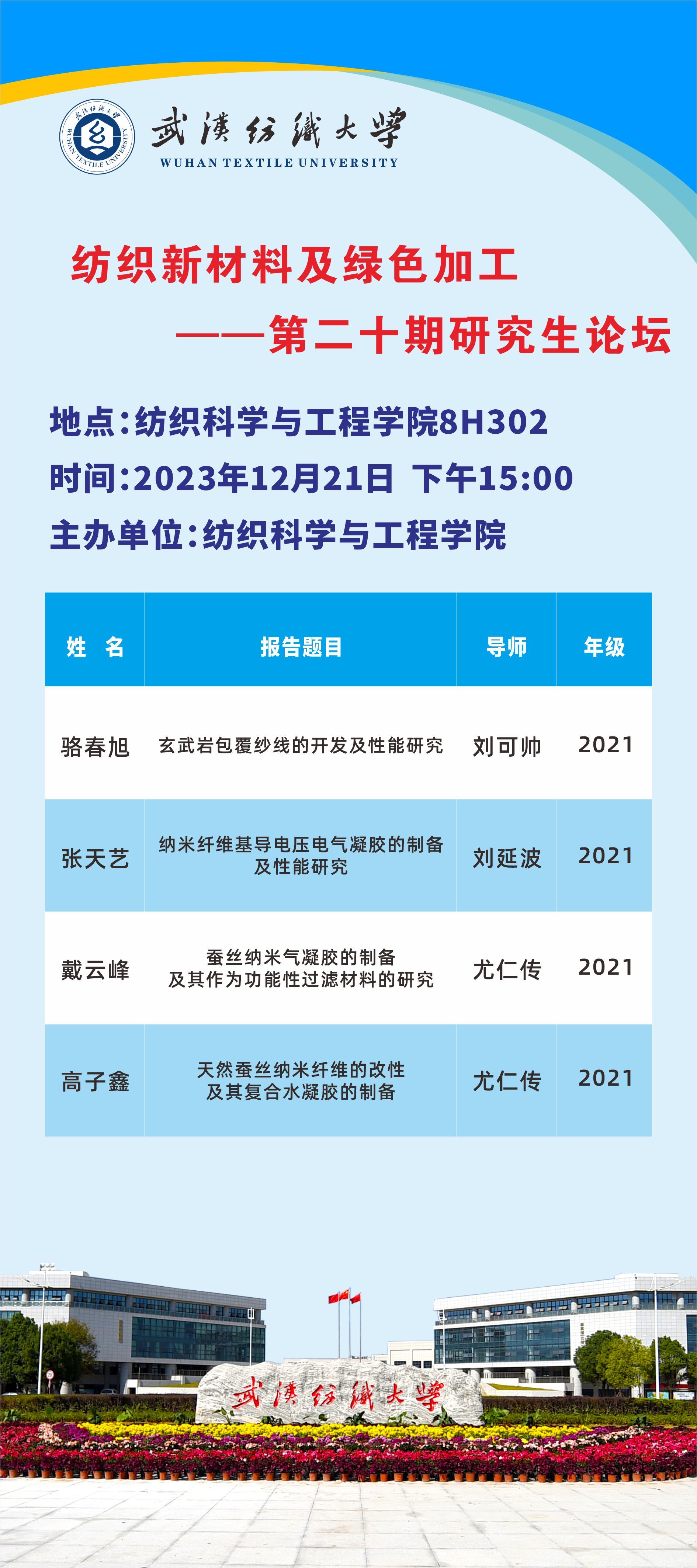 学术预告:第492期研究生学术论坛暨纺织科学与工程学院2023年第11期研究生学术论坛