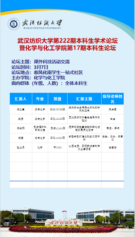 第222期本科生学术论坛暨化学与化工学院第17期本科生论坛