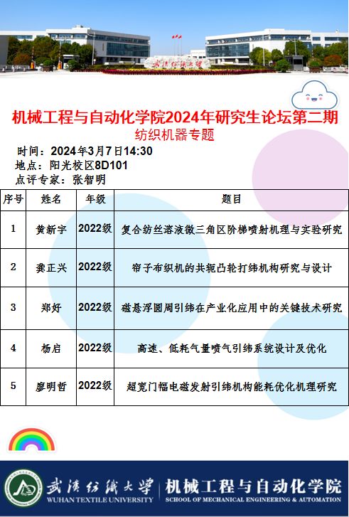 学术预告:第499期研究生学术论坛暨机械工程与自动化学院2024年第2期研究生学术论坛