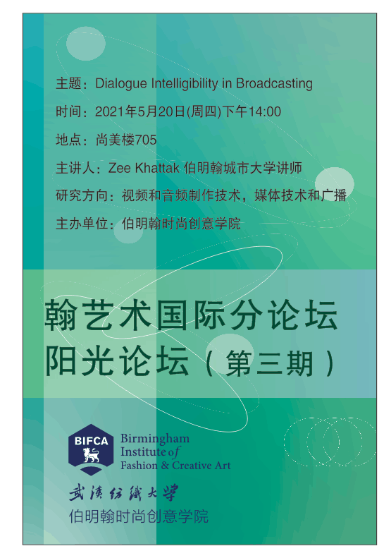 主讲人简介:Zee Khattak,伯明翰城市大学讲师,现担任LETOU国际米兰官网伯明翰时尚创意学院大三年级数字媒体艺术专业教师。研究领域:视频和音频制作技术,媒体技术和广播。研究涉及到包括全光“光场”摄像机在内的摄像机技术。此外,还对基于对象的音频广播工程进行研究。