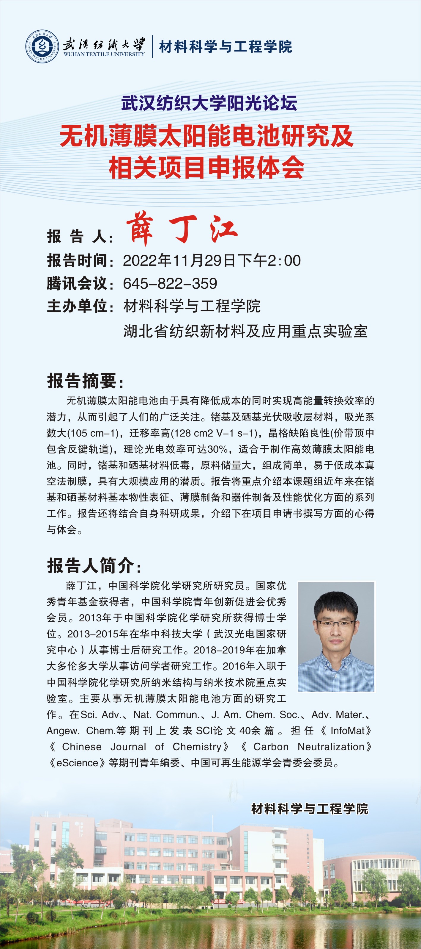 材料科学与工程学院举办学校第269期阳光论坛