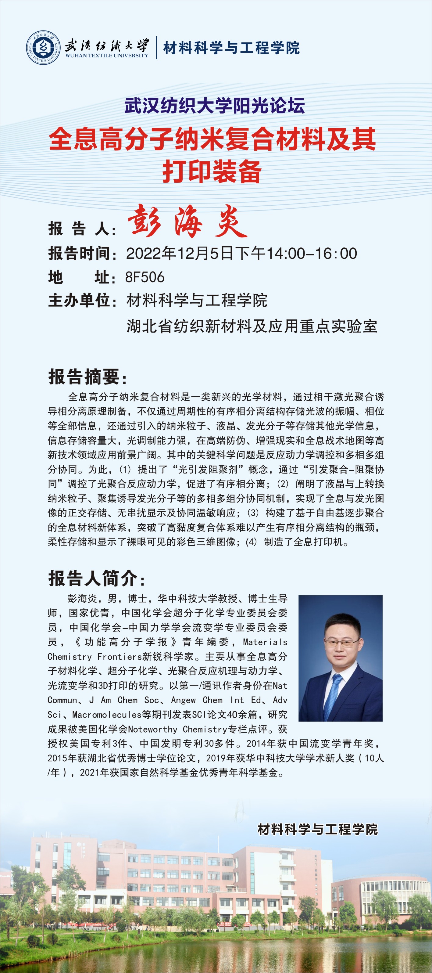 材料科学与工程学院举办学校第270期阳光论坛