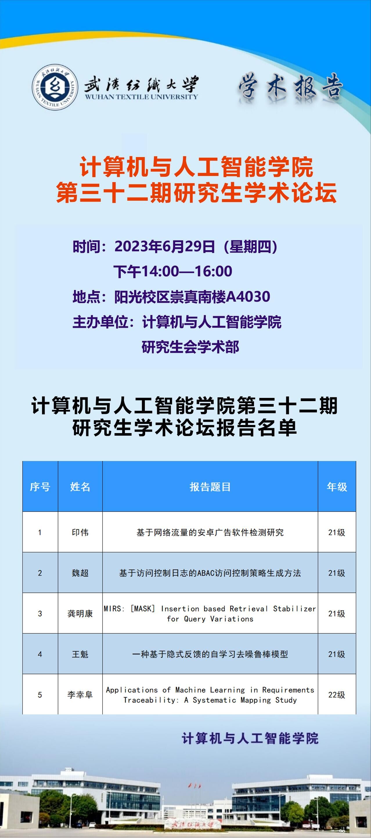 学术预告:第324期研究生学术论坛暨计算机与人工智能学院2023年第8期研究生学术论坛