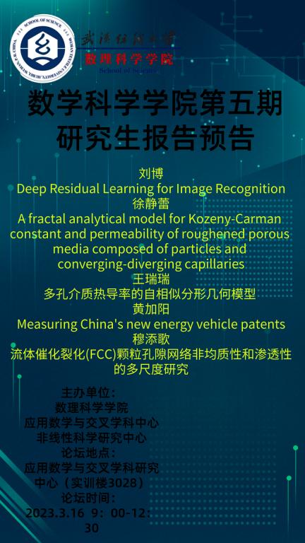 学术预告:第235期研究生学术论坛暨数理科学学院2023年第5期研究生学术论坛