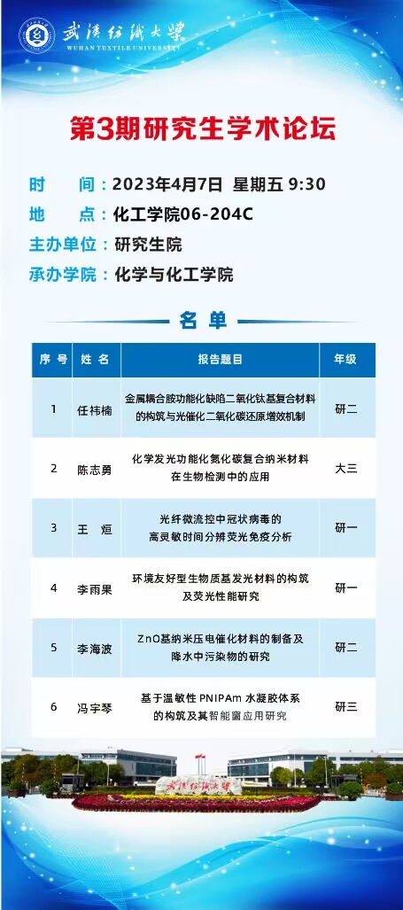 学术预告:第289期研究生学术论坛暨化学与化工学院2023年第3期研究生学术论坛