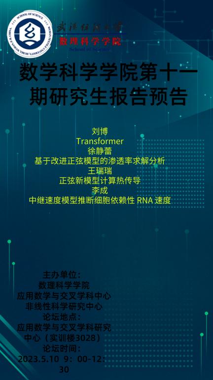 学术预告:第305期研究生学术论坛暨数理科学学院2023年第11期研究生学术论坛
