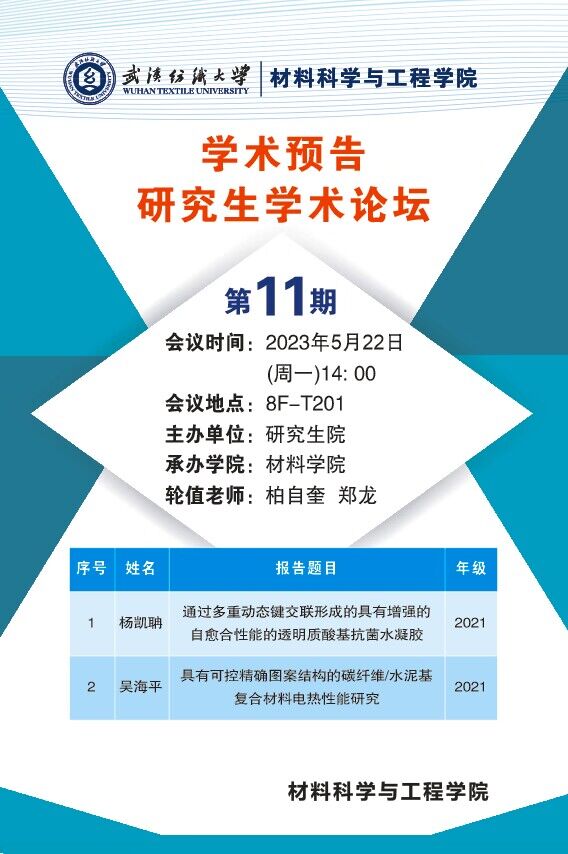 学术预告:第297期研究生学术论坛暨材料科学与工程学院2023年第11期研究生论坛