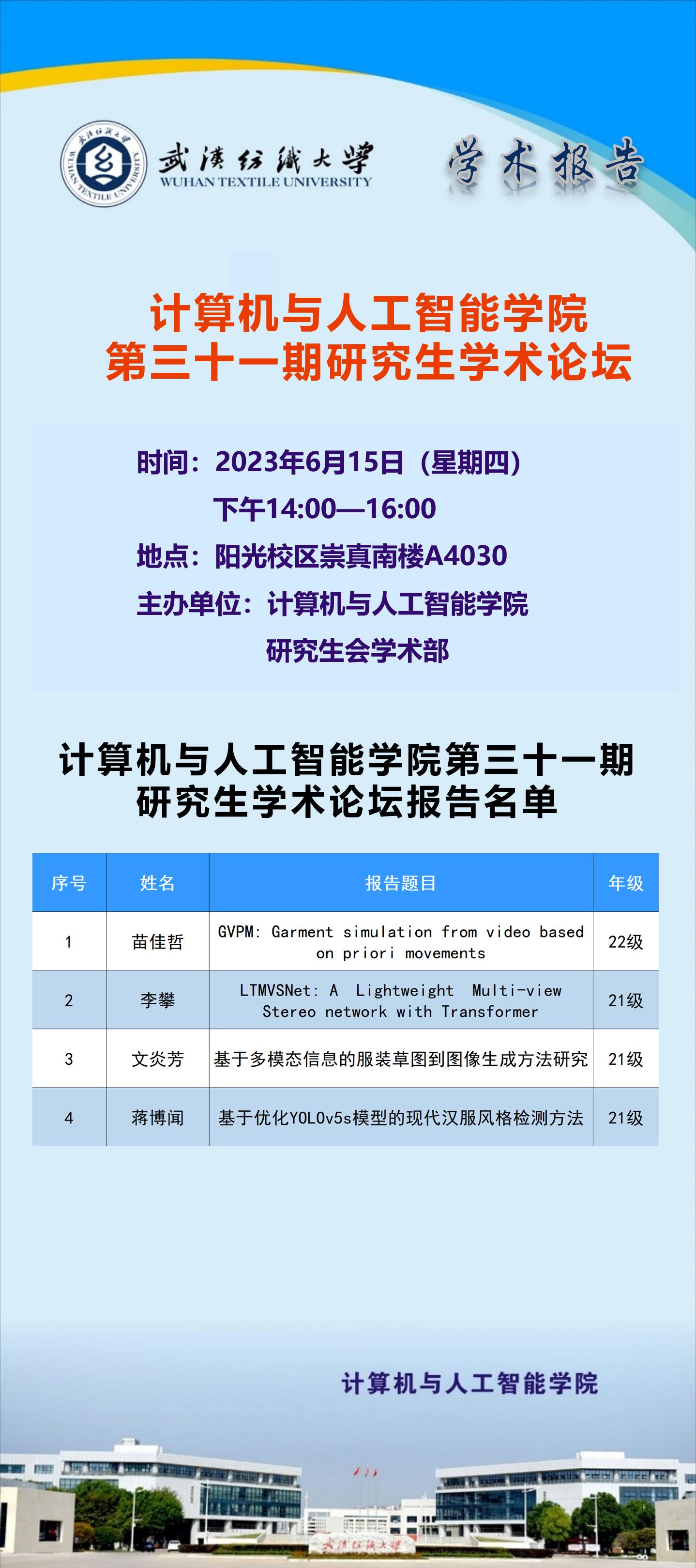 学术预告:第318期研究生学术论坛暨计算机与人工智能学院2023年第7期研究生学术论坛