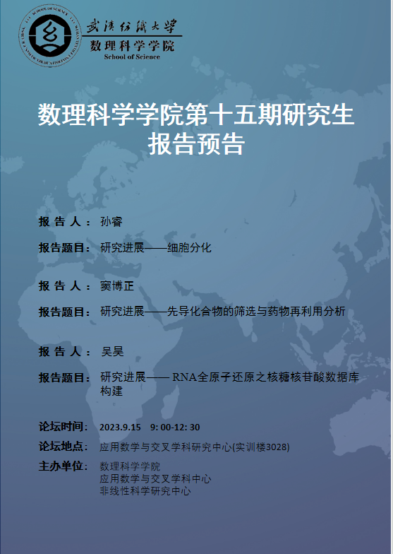 学术预告:第331期研究生学术论坛暨数理科学学院2023年第15期研究生学术论坛