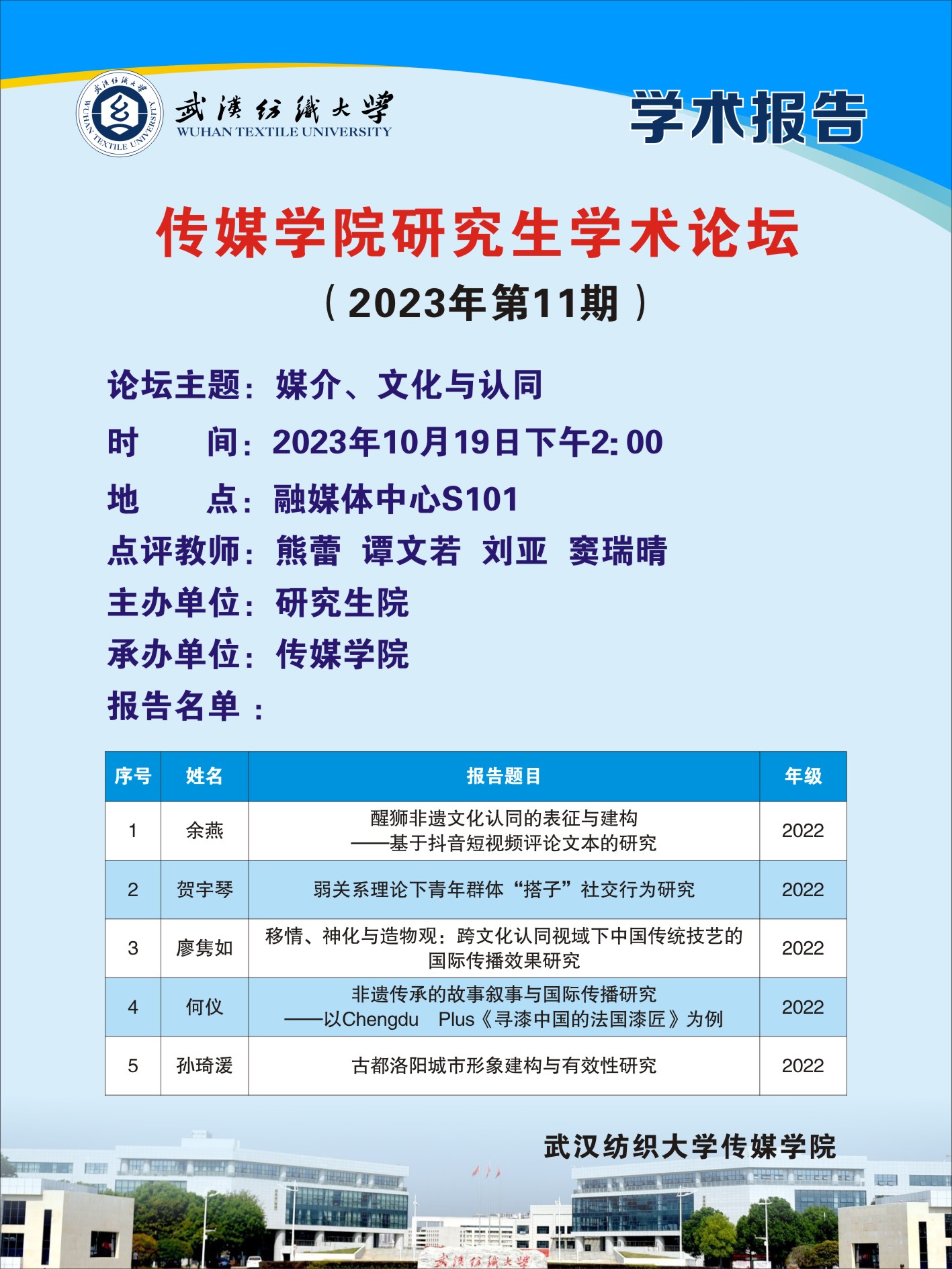学术预告:第360期研究生学术论坛暨传媒学院2023年第11期研究生学术论坛