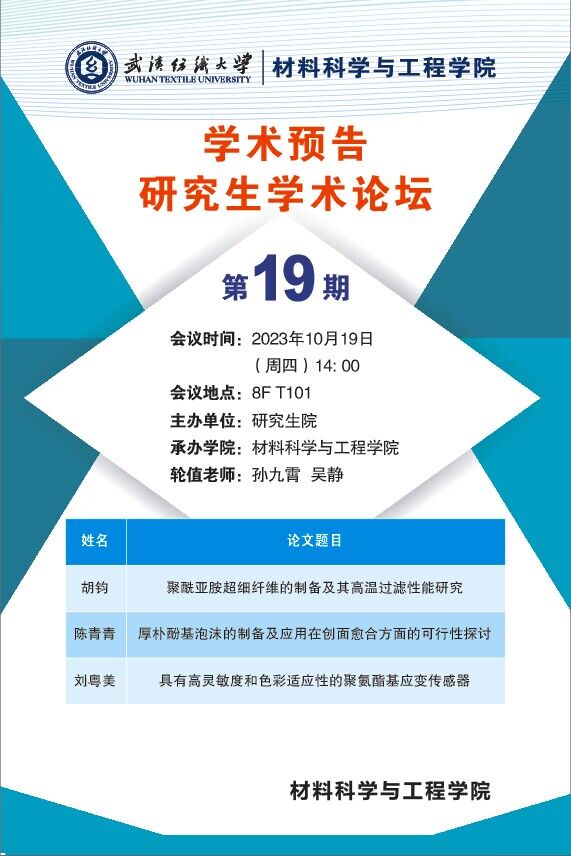 学术预告:第366期研究生学术论坛暨材料科学与工程学院2023年第19期研究生学术论坛
