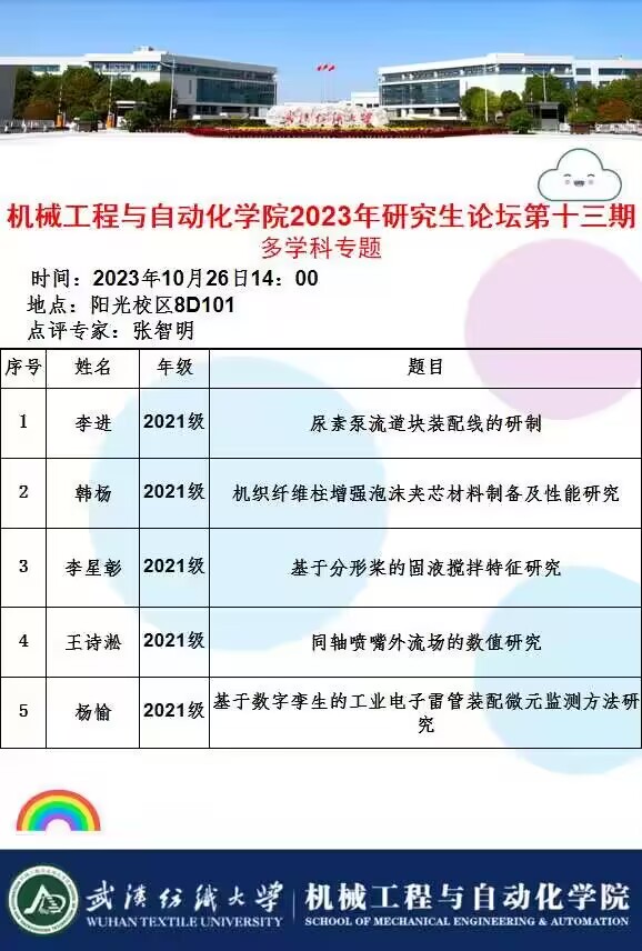 学术预告:第382期研究生学术论坛暨机械工程与自动化学院2023年第13期研究生学术论坛
