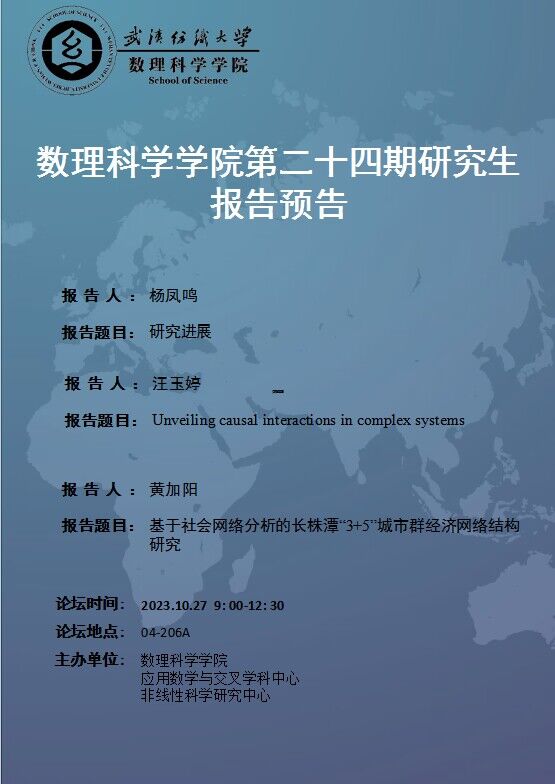 学术预告:第385期研究生学术论坛暨数理科学学院2023年第24期研究生学术论坛