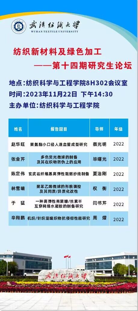 学术预告:第420期研究生学术论坛暨纺织科学与工程学院2023年第6期研究生学术论坛