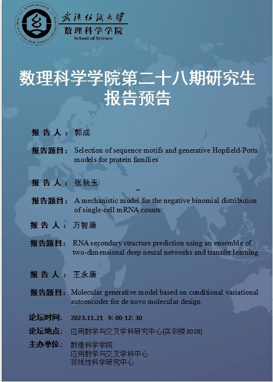 学术预告:第423期研究生学术论坛暨数理科学学院2023年第28期研究生学术论坛