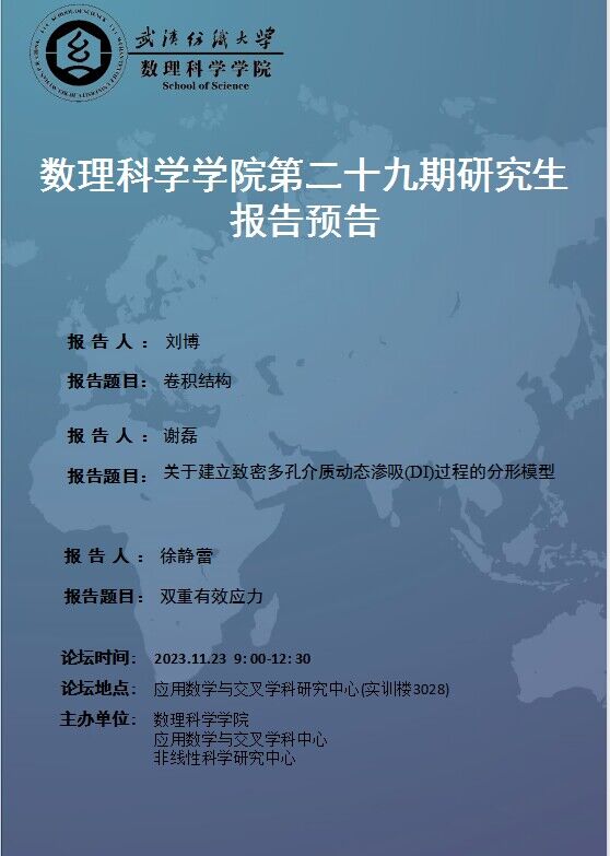 学术预告:第424期研究生学术论坛暨数理科学学院2023年第29期研究生学术论坛