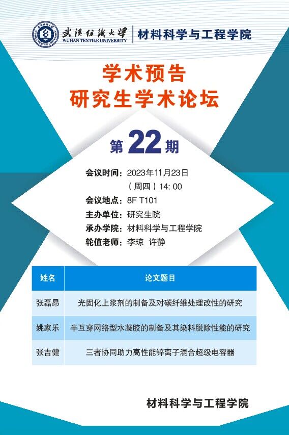 学术预告:第430期研究生学术论坛暨材料科学与工程学院2023年第22期研究生学术论坛