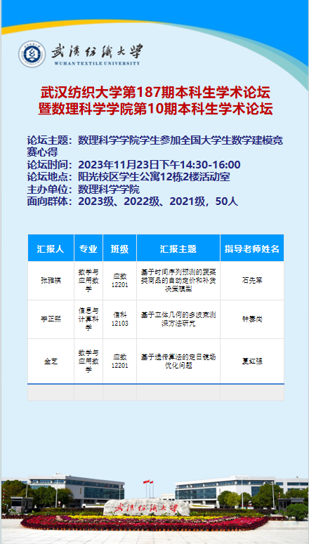 第187期本科生学术论坛暨数理科学学院第10期本科生学术论坛