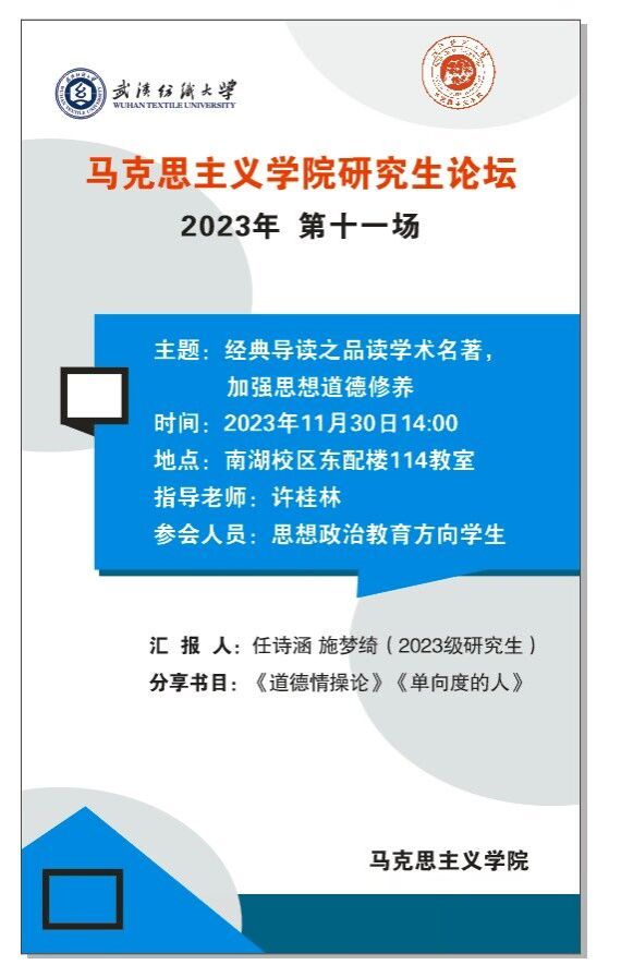 学术预告:第446期研究生学术论坛暨马克思主义学院2023年第11期研究生学术论坛