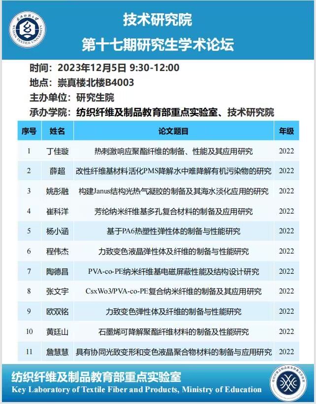 学术预告:第449期研究生学术论坛暨技术研究院2023年第17期研究生学术论坛