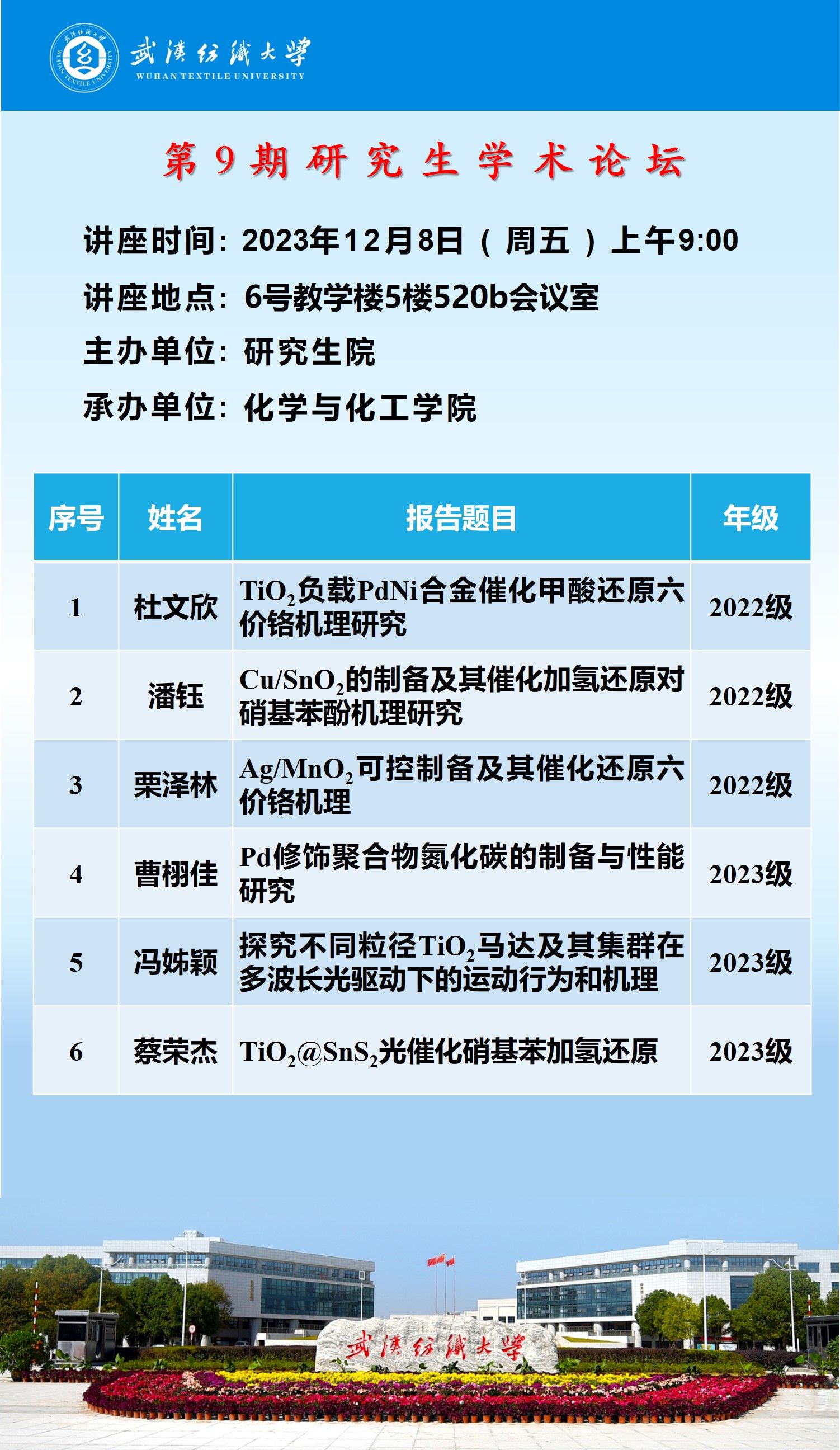 学术预告:第454期研究生学术论坛暨化学与化工学院2023年第8期研究生学术论坛