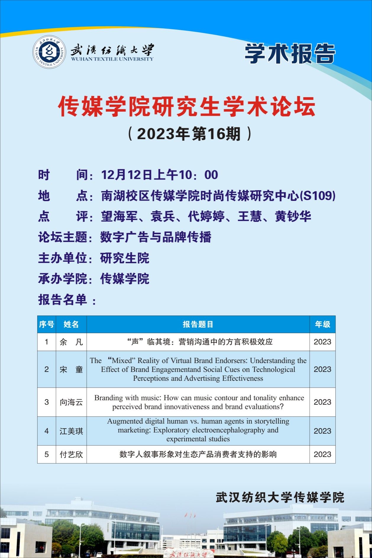 学术预告:第469期研究生学术论坛暨传媒学院2023年第16期研究生学术论坛
