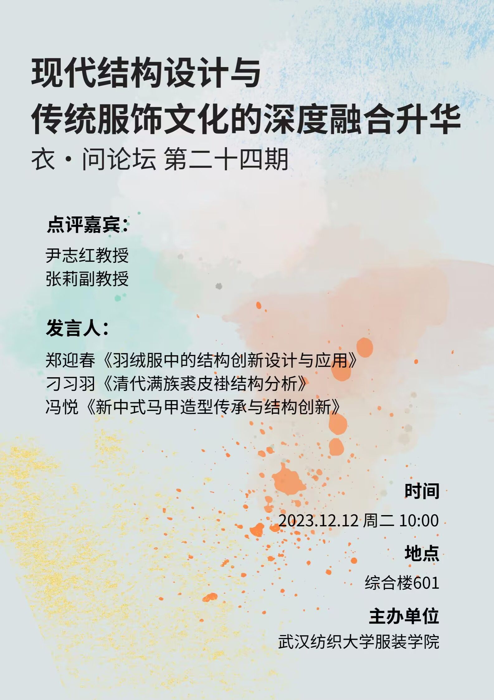学术预告:第476期研究生学术论坛暨服装学院2023年第14期研究生学术论坛